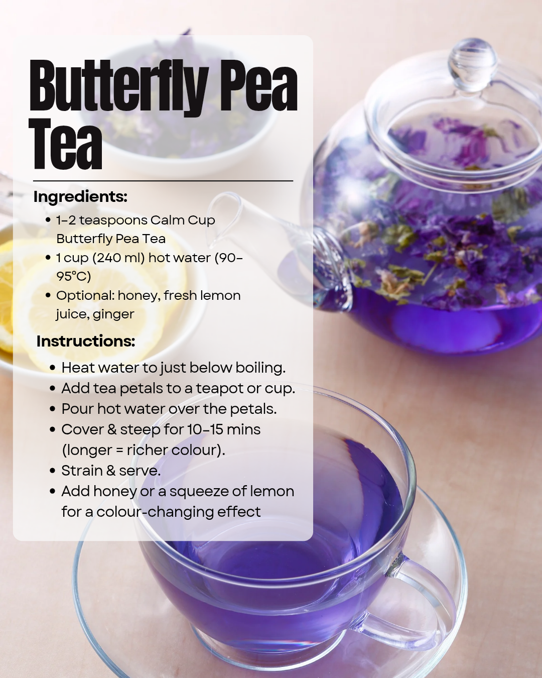 1–2 teaspoons Calm Cup Butterfly Pea Tea